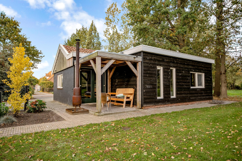 De achtertuin, gelegen op het westen, is onderhoudsvriendelijk aangelegd met gazon, beplanting, een keurig houthok en een grote overkapping met terrasgedeelte en houtkachel. Een heerlijke plek om tot ’s avonds laat buiten te zitten. De voortuin is eveneens netjes aangelegd en aan de rechterzijde van de woning bevindt zich een eigen oprit met gedeeltelijke overkapping die aansluit op de berging.
